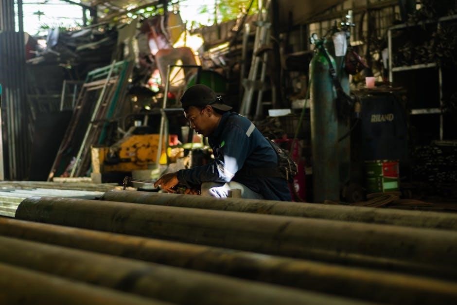Proper storage and protection are crucial for maintaining the performance and longevity of manual pipe benders. Store the tool in a dry, clean environment to prevent rust and corrosion. Use a protective case or cover to shield it from dust and accidental damage. Avoid stacking heavy objects on the bender, as this could bend or warp its frame. Regularly inspect the tool for signs of wear or damage before and after storage. For extended periods of inactivity, apply a light coat of rust-inhibiting oil to exposed metal parts. Store the bender in an upright position to maintain balance and prevent misalignment. Ensure it is secure during transport to avoid impacts. Proper storage ensures optimal functionality and extends the lifespan of the tool. Always check for manufacturer-specific storage recommendations, as some models may require special care. Consistent storage practices help maintain precision and reliability in future projects. Regular inspection during storage can prevent potential issues. Properly storing a manual pipe bender guarantees it remains in excellent condition for years. This practice is vital for both professional and DIY applications. By following these guidelines, users can ensure their manual pipe benders remain reliable and efficient. Proper storage and protection are essential for preserving the tool’s integrity. Always handle the bender with care to avoid damage during storage or transport. This attention to detail ensures the tool performs consistently in various projects. Effective storage practices are a cornerstone of tool maintenance. They prevent unnecessary repairs and extend the tool’s lifespan. Always prioritize storage and protection to maintain the bender’s quality and functionality. This ensures it remains a valuable asset for any task requiring precise pipe bending. Proper storage and protection are key to maintaining the tool’s effectiveness. Regularly inspecting and storing the bender correctly prevents rust, damage, and wear. This practice ensures the tool remains ready for use whenever needed. Proper storage and protection are vital for preserving the manual pipe bender’s performance and longevity. Always store the tool in a secure, dry location to maintain its condition. This ensures it continues to deliver precise results in various applications. Proper storage and protection are essential for maintaining the manual pipe bender’s functionality and ensuring it remains a reliable tool for years to come. By following these guidelines, users can preserve the quality and performance of their manual pipe benders. Proper storage and protection are critical for maintaining the tool’s integrity and longevity. Always store the bender in a clean, dry environment and protect it from potential damage. This ensures it remains in excellent working condition for future projects. Proper storage and protection are vital for extending the lifespan of manual pipe benders. Regularly inspect and maintain the tool during storage to prevent rust and damage. This ensures it continues to perform optimally in various applications. Proper storage and protection are essential for preserving the manual pipe bender’s quality and functionality. Always store the tool securely to maintain its condition and ensure reliable performance. Proper storage and protection are key to maintaining the manual pipe bender’s precision and longevity. Regularly inspect and store the tool correctly to prevent damage and ensure it remains functional for years. Proper storage and protection are vital for preserving the manual pipe bender’s performance and extending its lifespan. Always store the tool in a dry, secure location to maintain its quality. Proper storage and protection are essential for maintaining the manual pipe bender’s effectiveness and ensuring it remains a valuable tool for various projects. By following these guidelines, users can preserve the tool’s condition and functionality. Proper storage and protection are crucial for maintaining the manual pipe bender’s integrity and longevity. Always store the tool in a clean, dry environment to prevent rust and damage. This ensures it remains ready for use whenever needed. Proper storage and protection are vital for extending the lifespan of manual pipe benders. Regularly inspect and maintain the tool during storage to ensure it continues to perform optimally. Proper storage and protection are essential for preserving the manual pipe bender’s quality and functionality. Always store the tool securely to maintain its condition and ensure reliable performance in various applications. Proper storage and protection are key to maintaining the manual pipe bender’s precision and longevity. Regularly inspect and store the tool correctly to prevent damage and ensure it remains functional for years to come. Proper storage and protection are vital for preserving the manual pipe bender’s performance and extending its lifespan. Always store the tool in a dry, secure location to maintain its quality and functionality. Proper storage and protection are essential for maintaining the manual pipe bender’s effectiveness and ensuring it remains a reliable tool for various projects. By following these guidelines, users can preserve the tool’s condition and ensure it continues to deliver precise results. Proper storage and protection are crucial for maintaining the manual pipe bender’s integrity and longevity. Always store the tool in a clean, dry environment to prevent rust and damage. This ensures it remains in excellent working condition for future tasks. Proper storage and protection are vital for extending the lifespan of manual pipe benders. Regularly inspect and maintain the tool during storage to ensure it continues to perform optimally. Proper storage and protection are essential for preserving the manual pipe bender’s quality and functionality; Always store the tool securely to maintain its condition and ensure 